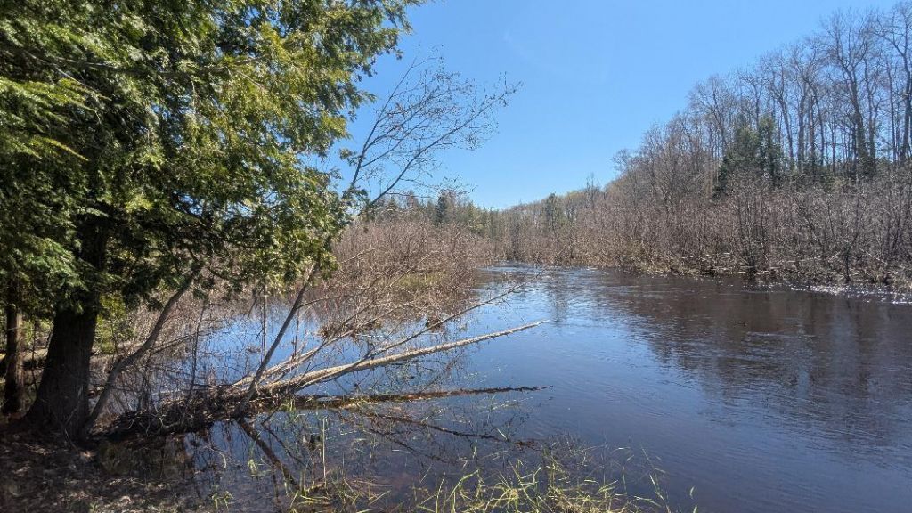 NEW PRICE! Live on Big Sauble River! Multiple views of the river from home in private setting on 2.23 acres. This quality 2 x 8 constructed home is well insulated for low heating bills. Gorgeous 3/4 tongue and groove walls and ceilings throughout home, hickory cabinets. 24 vaulted ceilings, skylights, hardwood floors. View the river and nature from windows on 3 sides to maximize the serenity. Wraparound deck and covered areas for all weather conditions. Sitting Room/Office area on 2nd floor. Numerous closets for storage as well as additional rooms in 13 block walkout basement for storage. Central air, u/g sprinklers for entire yard, platform deck on river for fishing, launching your kayak or just sitting and enjoying nature! Roof replaced in 2021, 40-gallon gas water heater. Detached heated 28x36 garage perfect for man cave, storing toys, etc. with generator hookup. Additional 12x16 shed with loft for even more storage! Envision coming home to your own private retreat !